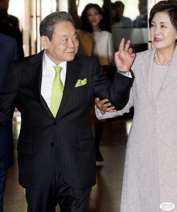 이건희 삼성전자 회장이 31일 오후 서울 중구 호암아트홀에서 열린 제23회 호암상 시상식에 참석하며 손인사를 하고 있다.