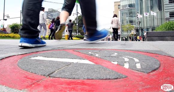 세계 금연의 날인 31일 서울 청계광장 보행지역 바닥에 금연거리를 알리는 표시가 돼 있다.