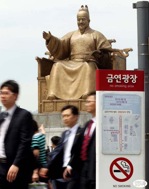 세계 금연의 날인 31일 서울 광화문광장 주변에 금연거리를 알리는 표지판이 설치되어 있다.