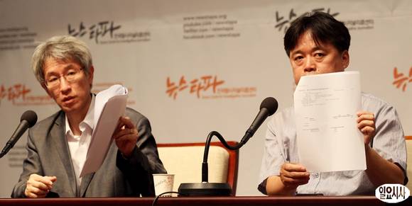 인터넷 언론 뉴스타파가 3일 오전 서울 중구 프레스센터에서 기자회견을 열고 국제탐사보도언론인협회(ICIJ)와 공동으로 취재한 한국인 조세피난처 4차 명단을 공개하고 있다. 이날 기자회견에서 전두환 전 대통령 장남인 전재국씨가 페이퍼컴퍼니를 설립했다고 발표했다. 사진 왼쪽부터 김용진 뉴스타파 대표, 최승호 뉴스타파 PD.