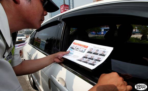 탈주범 이대우가 지난달 20일 전주지검 남원지청에서 조사를 받다 달아나 서울에 잠입한 것으로 알려지면서 3일 오후 서울역 인근에서 경찰들이 택시기사들에게 수배전단을 배포하고 있다.