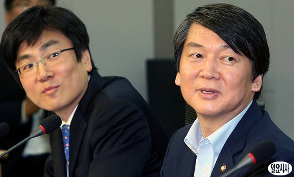 무소속 안철수 의원(사진 오른쪽)이 3일 오후, 서울 여의도 국회 의원회관에서 열린 '민생 난제의 생생한 현실을 당사자들로부터 직접 듣겠습니다' 정책간담회 도중 웃음 짓고 있다.