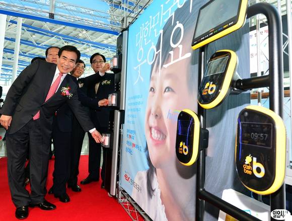4일 오전 서울역에서 열린 '전국 호환 교통카드' 시연행사에서 여형구 국토교통부 제2차관을 비롯한 참석자들이 교통카드 시연을 해 보고 있다.