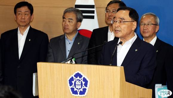 정홍원 국무총리가 4일 오후 서울 세종로 정부서울청사에서 '고용률 70% 달성 로드맵' 정부합동 브리핑을 하고 있다.