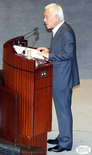 민주당 김한길 대표가 5일, 서울 여의도 국회 본회의장에서 교섭단체대표연설을 하고 있다.