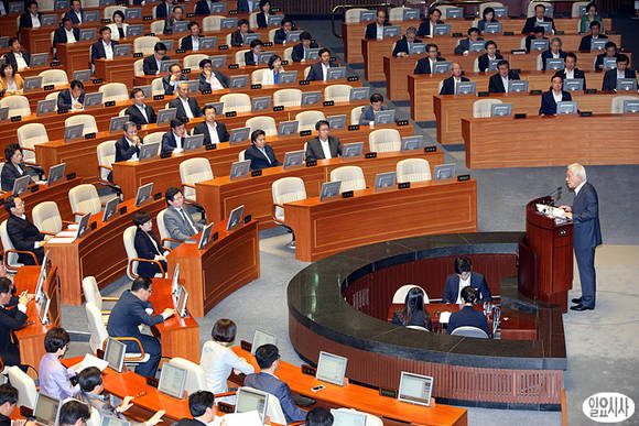 민주당 김한길 대표가 5일 오후, 서울 여의도 국회 본회의장에서 교섭단체대표연설을 하고 있다.