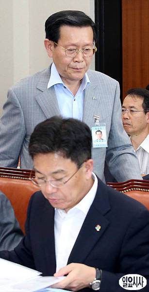 김균섭 한국수자력원자력사장이 5일 오후 국회 산업통상자원위원회 전체회의에서 자리로 이동하고 있다.