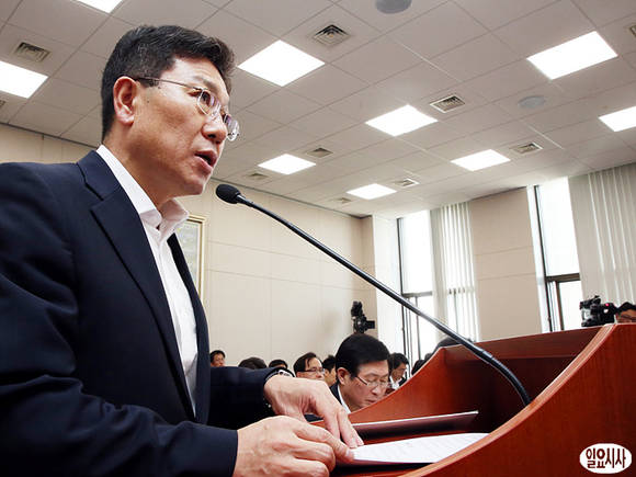 윤상직 산업통상자원부 장관이 5일 오후 국회 산업통상자원위원회 전체회의에서 업무보고를 하고 있다.