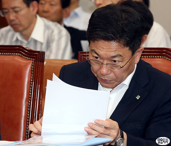 윤상직 산업통상자원부 장관이 5일 오후 국회 산업통상자원위원회 전체회의 도중 심각한 표정으로 관련 자료를 확인하고 있다.