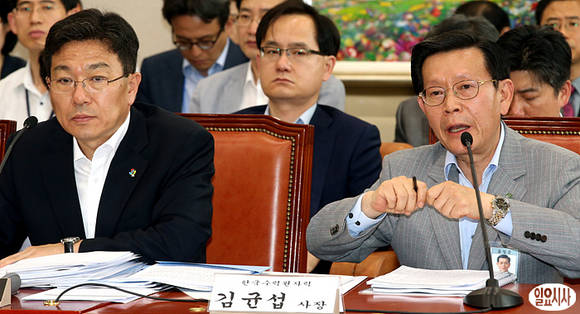 김균섭 한국수자력원자력 사장이 5일 오후 국회 산업통상자원위원회 전체회의에서 의원들의 질의에 답변하고 있다.