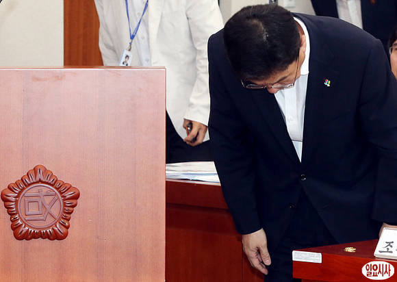 김균섭 한국수자력원자력 사장이 5일 오후 국회 산업통상자원위원회 전체회의 직전, 원전비리 사태와 관련해 고개 숙여 사과하고 있다.