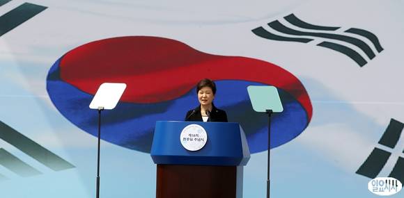 박근혜 대통령이 6일 오전 서울 동작동 국립현충원에서 열린 제58회 현충일 추념식에서 추념사를 하고 있다.