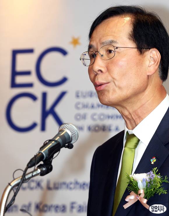노대래 공정거래위원장이 7일 오전 서울 소공동 롯데호텔에서 주한 유럽상공회의소(ECCK) 주최로 열린 오찬간담회에서 인사말을 하고 있다.