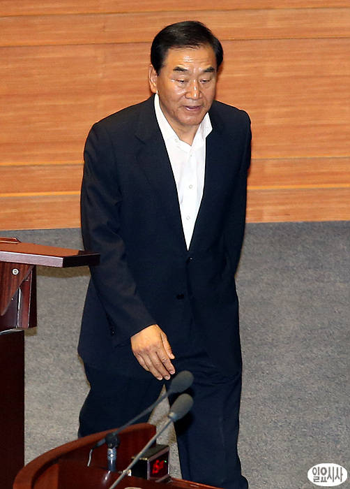 새누리당 이재오 의원이 10일 서울 여의도 국회 본회의장에서 열린 정치분야 대정부질의를 하기 위해 단상으로 이동하고 있다.
