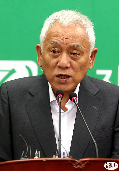 김한길 민주당 대표가 11일 오전 서울 여의도 국회 당대표실에서 국정원 대선 개입 의혹과 관련해 긴급기자회견을 열고 있다.