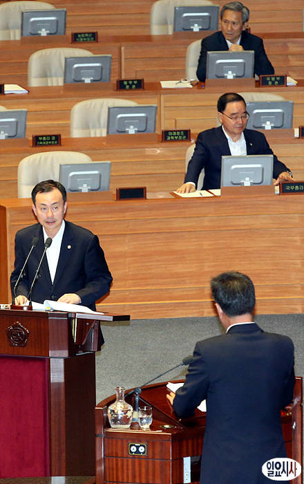 김남식 통일부 차관(사진 왼쪽)이 11일 오전, 국회 본회의장 대정부질문에서 새누리당 정문헌 의원 질의에 답변하고 있다.