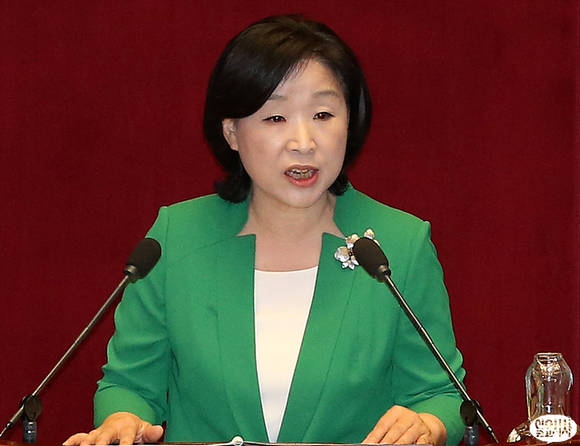 진보정의당 심상정 원내대표가 11일 오전, 국회 대정부 질문에 앞서 비교섭단체 대표연설을 하고 있다.