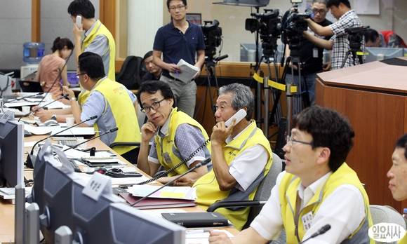 연일 계속되는 폭염으로 사상 최악의 전력난이 예고된 12일 오후 서울 삼상동 한국전력거래소 긴급 전력수급 대책상황실에서 관계자들이 분주히 업무를 보고 있다.