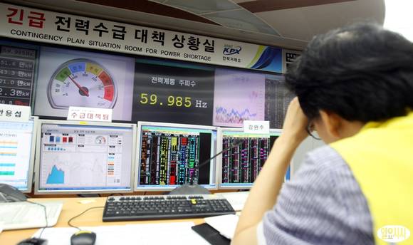 연일 계속되는 폭염으로 사상 최악의 전력난이 예고된 12일 오후 서울 삼상동 한국전력거래소 긴급 전력수급 대책상황실에서 관계자들이 분주히 업무를 보고 있다.