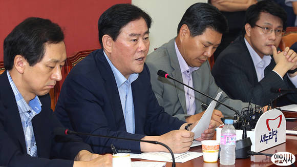 13일 오전, 국회에서 열린 원내대책회의에서 최경환 원내대표가 발언하고 있다.