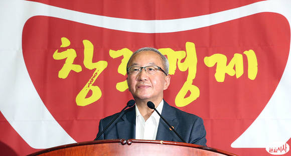 현오석 부총리 겸 기획재정부 장관이 13일 오후, 국회에서 열린 새누리당 정책 의원총회에 참석, 세제개편 수정안을 보고전 인사하고 있다.