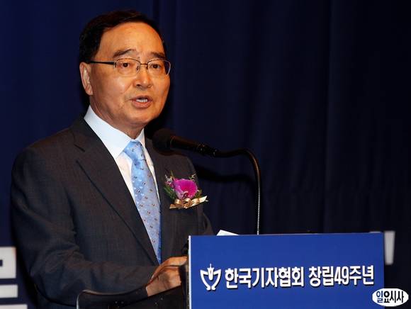 정홍원 국무총리가 14일 오전 서울 중구 프레스센터에서 열린 한국기자협회 창립49주년 기념식에서 축사를 하고 있다.