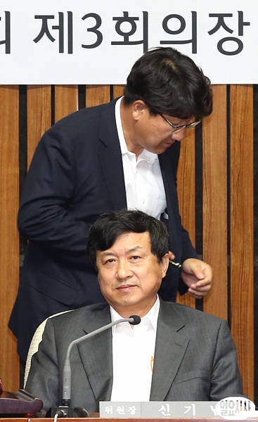 14일 오전 국회에서 국가정보원 댓글의혹 사건 등의 진상규명을 위한 국정조사청문회가 열리고 있는 가운데, 권성동 새누리당 간사가 신기남 국정조사 특위 위원장 뒤를 지나가고 있다.