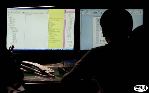 연일 계속되는 폭염으로 전국이 전력난에 허덕이는 가운데 14일 서울 삼성동 한국전력거래소 사무실에서 직원들이 에너지 절약을 위해 소등을 한 채 업무를 보고 있다.