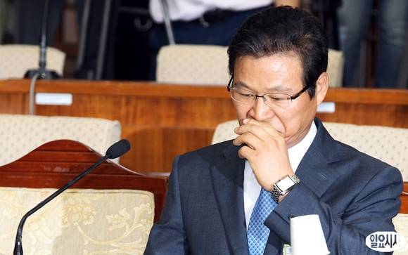 김용판 전 서울경찰청장이 16일 오전 서울 여의도 국회에서 열린 국가정보원 댓글 의혹 사건 등 진상규명을 위한 국정조사 청문회에 출석, 코를 만지고 있다.