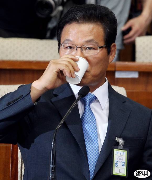 김용판 전 서울경찰청장이 16일 오전 서울 여의도 국회에서 열린 국가정보원 댓글 의혹 사건 등 진상규명을 위한 국정조사 청문회에 출석, 물을 마시고 있다.