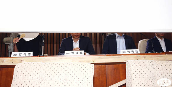 국가정보원 댓글의혹 사건 규명을 위한 국정조사 특위 2차 청문회가 19일 오후 국회에서 열린 가운데, 증인으로 출석한 국정원(좌측부터 증인 김직원, 민국장, 박국장, 최팀장) 직원들이 커튼가림막 뒤에서 의원들 질의에 답변 하고 있다. 일요시사=나경식 기자(rusia1973@ilyosisa.co.kr)