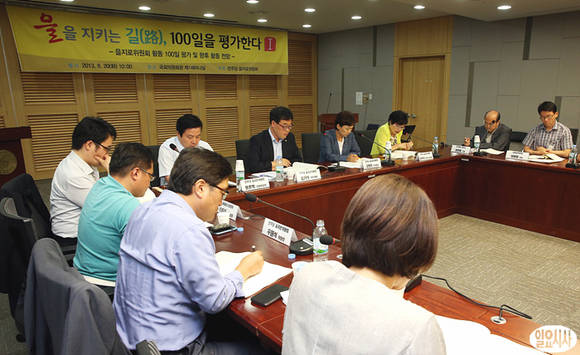 20일 오전, 국회 의원회관 세미나실에서 '민주당 을지로위원회 100일 평가 토론회'가 열리고 있다.