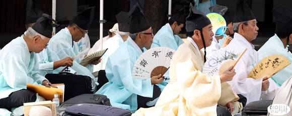 21일 오전 서울 종로구 운현궁에서 열린 '제21회 전국한시백일장'에서 참가자들이 무더위에 부채질을 하고 있다.
