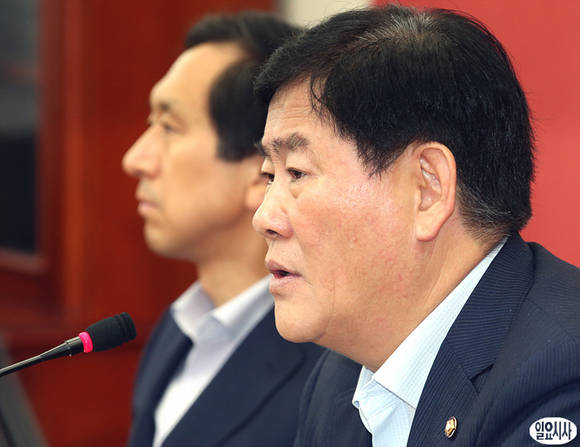 최경환 새누리당 원내대표가 21일 오전, 국회 원내대표실에서 열린 취임 100일 기자간담회에서 발언하고 있다.