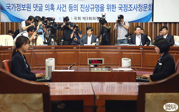 21일 오전 국회에서 열린 국가정보원 댓글 의혹 사건 등의 진상규명을 위한 국정조사특별위원회 청문회에서 신기남 특위위원장이 의사봉을 두드리며 개회를 선언하고 있다.