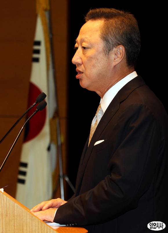 박용만 신임 대한상공회의소 회장이 21일 오후 서울 중구 남대문로 대한상공회의소에서 열린 취임식에서 취임사를 하고 있다.