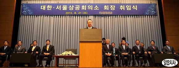박용만 신임 대한상공회의소 회장이 21일 오후 서울 중구 남대문로 대한상공회의소에서 열린 취임식에서 취임사를 하고 있다.