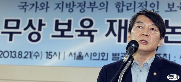 안철수 무소속 의원이 21일 오후 서울시의회 별관에서 열린 국가와 지방정부의 합리적인 보육재정 분담 방안 모색을 위한 토론회에 참석해 축사를 하고 있다.