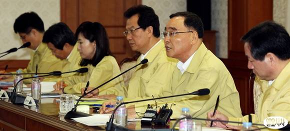 정홍원 국무총리(오른쪽 두번째)가 22일 오전 서울 세종로 정부서울청사에서 열린 국가정책조정회의에 참석해 모두발언을 하고 있다.