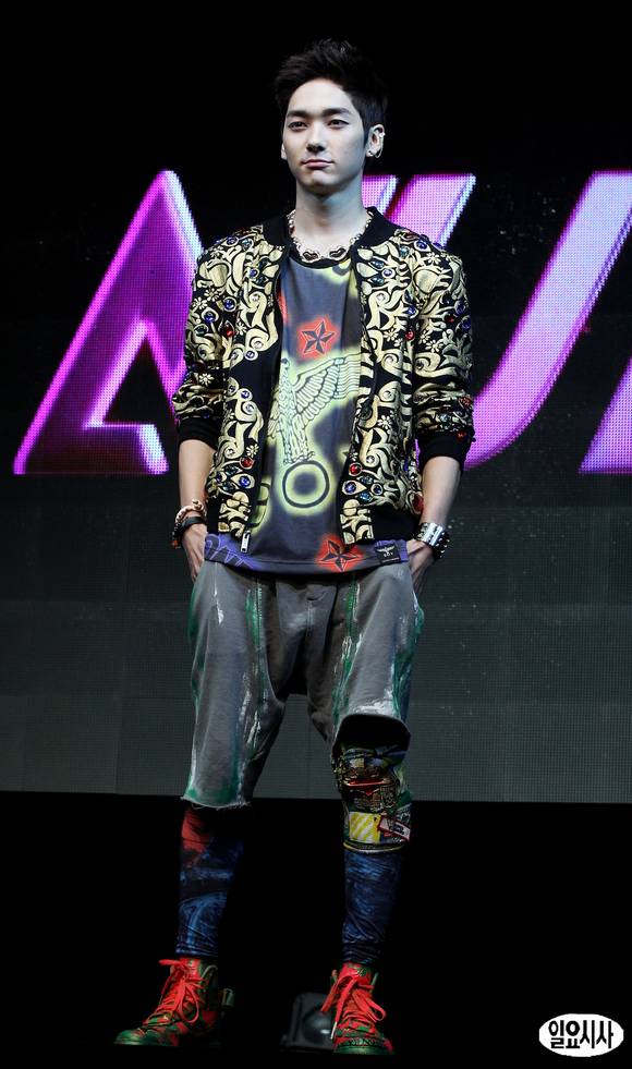 뉴이스트 멤버 아론이 22일 오후 서울 서교동 메세나폴리스에서 열린 세번째 미니앨범 '잠꼬대' 기자간담회에서 포토타임을 갖고 있다.