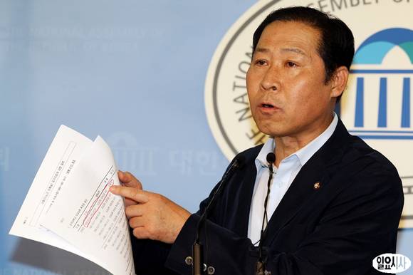 이노근 새누리당 의원이 23일 서울 여의도 국회 정론관에서 안철수 무소속 의원 관련 기자회견을 갖고 있다.