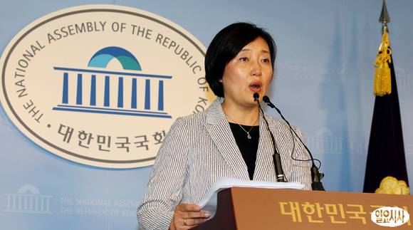 박영선 민주당 의원이 23일 서울 여의도 국회 정론관에서 '국정원개혁 패키지 4법' 입법 추진과 관련한 기자회견을 갖고 있다.