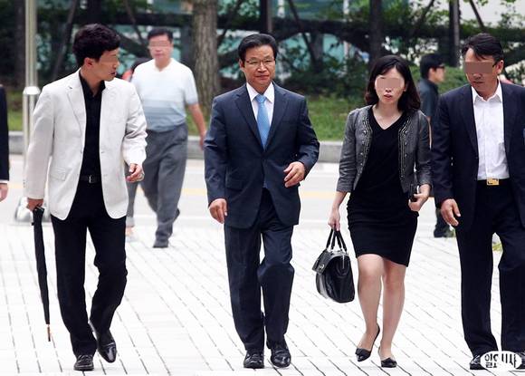 정치·선거에 개입한 혐의(공직선거법 위반) 등으로 기소된 김용판 전 서울지방경찰청장이 23일 오후 첫 공판을 받기 위해 서울 서초동 서울중앙지법에 출석하고 있다.