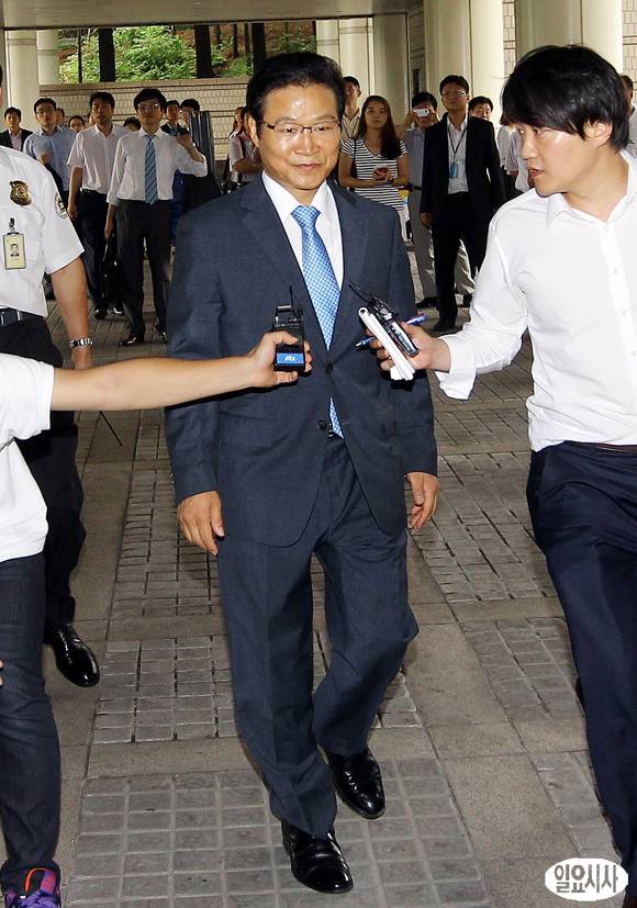 정치·선거에 개입한 혐의(공직선거법 위반) 등으로 기소된 김용판 전 서울지방경찰청장이 23일 오후 첫 공판을 받기 위해 서울 서초동 서울중앙지법에 출석, 취재진의 질문을 받고 있다.