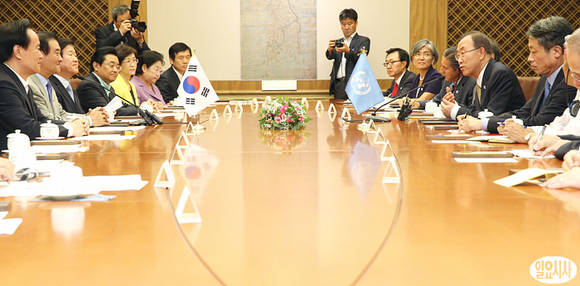 반기문 유엔 사무총장이 23일 오후 서울 여의도 국회의사당에서 강창희 국회의장, 여야 원내대표 등을 접견해 인