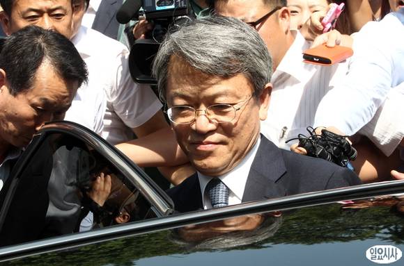 지난 23일 전격 사퇴한 양건 감사원장이 26일 오전 서울 종로구 삼청동 감사원에서 이임식을 마친 뒤 차량에 탑승하고 있다.