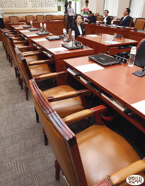 국회 법사위가 26일 오전 야당 위원들이 참석하지 않은 채 자리가 텅텅 비어 있다.