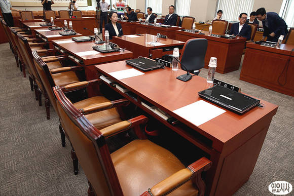 국회 법사위가 26일 오전 야당 위원들이 참석하지 않은 채 자리가 텅텅 비어 있다.