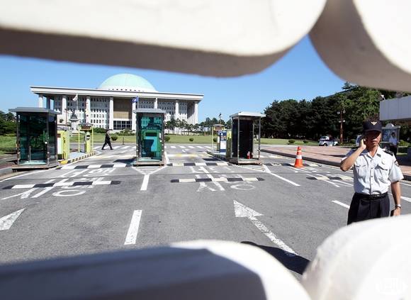 이석기 통합진보당 의원에 대한 체포동의안이 국회 본회의에서 표결 예정된 4일 서울 여의도 국회 앞에서 경찰들이 만일의 사태에 대비해 경계근무를 서고 있다.