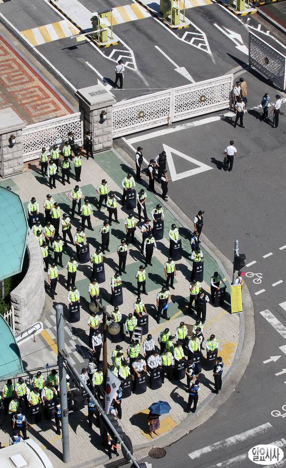 이석기 통합진보당 의원에 대한 체포동의안이 국회 본회의에서 표결 예정된 4일 서울 여의도 국회 앞에서 경찰들이 만일의 사태에 대비해 경계근무를 서고 있다.
